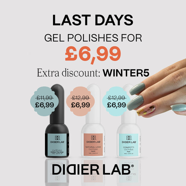 At Didier Lab, we create professional nail care products and tools designed to deliver salon-quality results at home and in the studio. Rooted in French expertise, our brand stands for innovation, precision, and uncompromising quality. From timeless essentials to trend-driven collections, every product is crafted to inspire creativity and ensure flawless results. Discover a wide selection of high-performance formulas and tools that combine beauty, durability, and style – trusted by professionals and loved by nail enthusiasts worldwide.