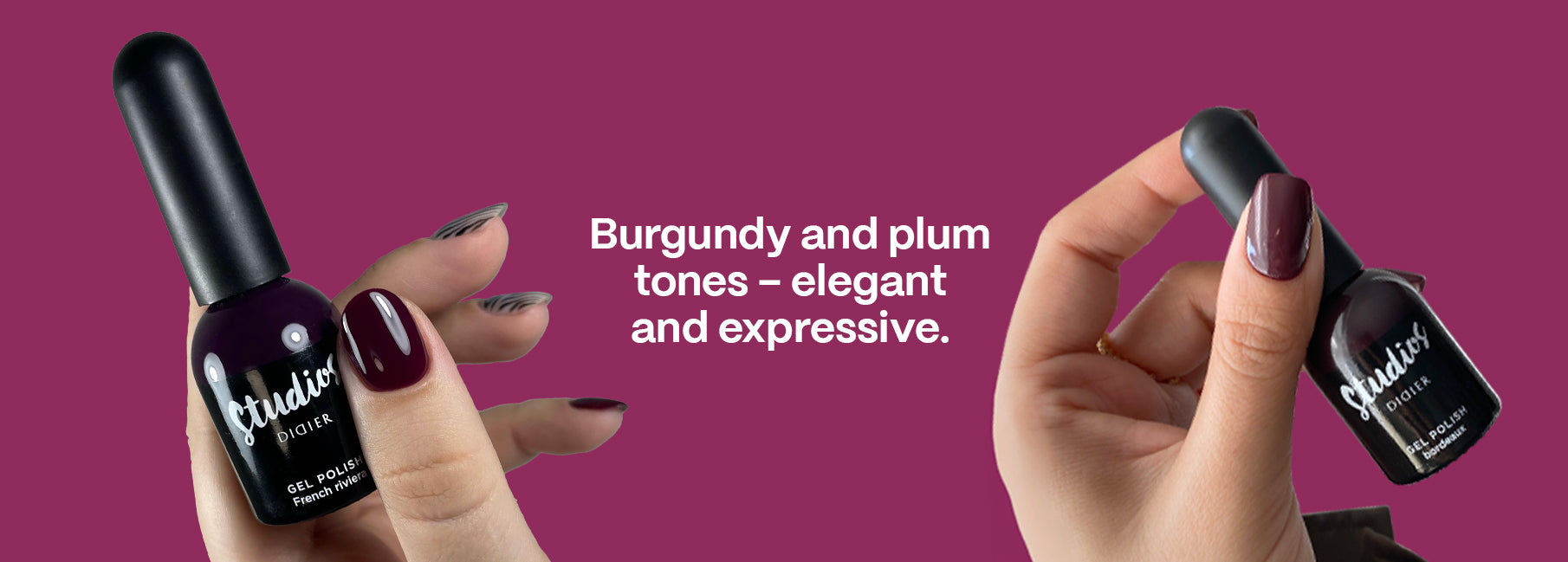 Deep burgundy and plum tones embody elegance, confidence, and strength like no other color palette. They add sophisticated depth to your nails and are the perfect companions for crisp autumn days – whether you’re enjoying a walk in the park or an evening dinner.