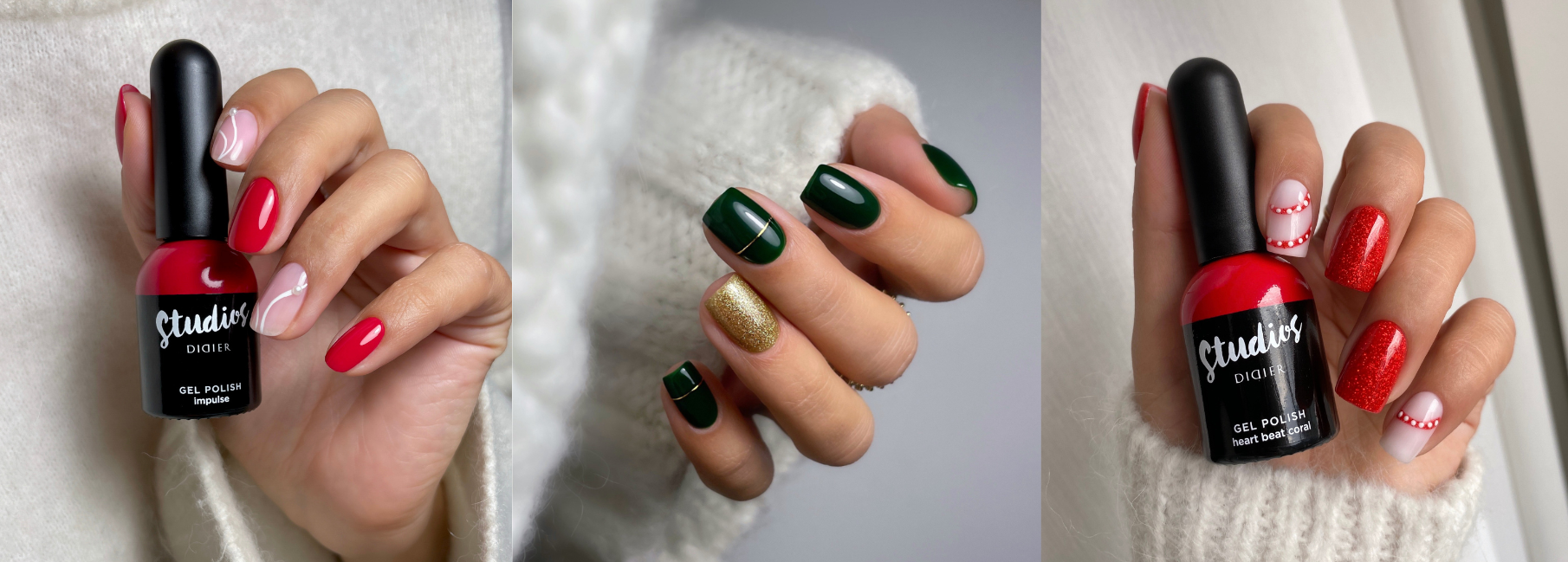 Christmas 2025 will be more glamorous than ever โ and the holiday nail trends show just how versatile festive manicures can be. Whether sparkling glitter designs, elegant snowflakes, or modern statement looks: with the high-quality products from Didier Lab, all Christmas styles can be created effortlessly and professionally. This year, special attention is on the shimmering shades of the Brillant Collection, the new Glitter Top Coats, bold trend colors from Electro and Pop Star, as well as classic deep red tones from the Studios Collection, which instantly add elegance to any design.