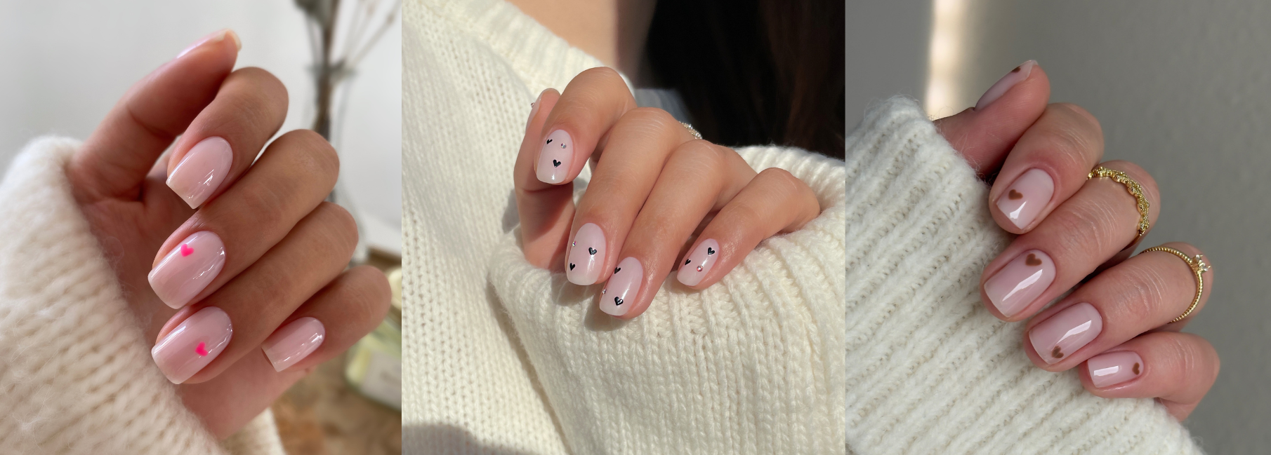 Minimalist hearts on single nails or scattered across all fingers – subtle and precise.