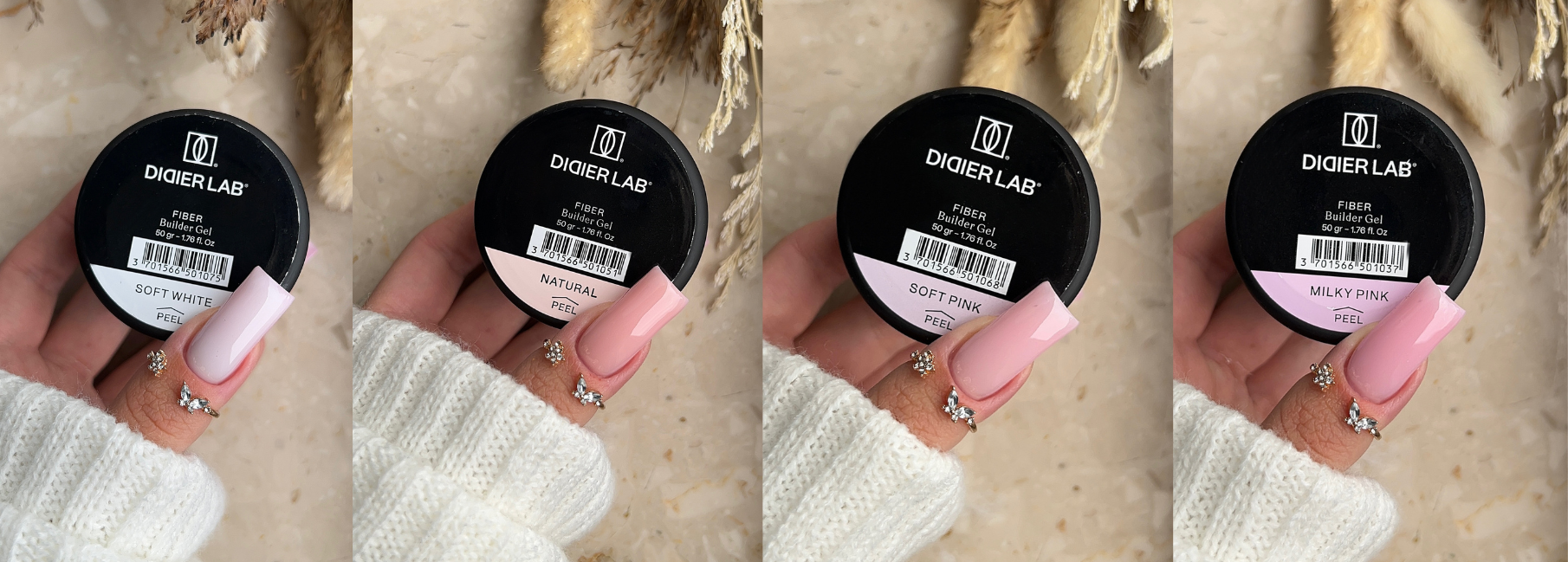 Polygels are easy to shape, while the Fiber Builder Gel is reinforced with glass fibers to stabilize even the thinnest nails.