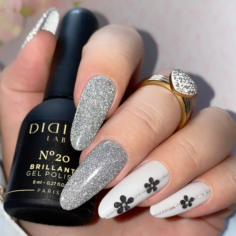 Enriched with platinum pigments, perfect for full nail coverage or various design solutions.