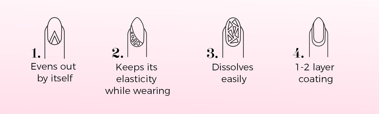 You can apply the base in **1 layer** for a beautiful transparent effect, **2 layers** for a more opaque look, or apply a thicker **2nd layer** for full coverage of the nail plate.