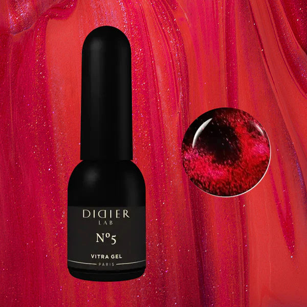 Apply your chosen Vitra Gel polish (No1, No2, No3, No4, or No5). This will create a stunning stained glass or aquarium-like deep effect. Cure in an LED lamp for 1 min / UV lamp for 2 min.