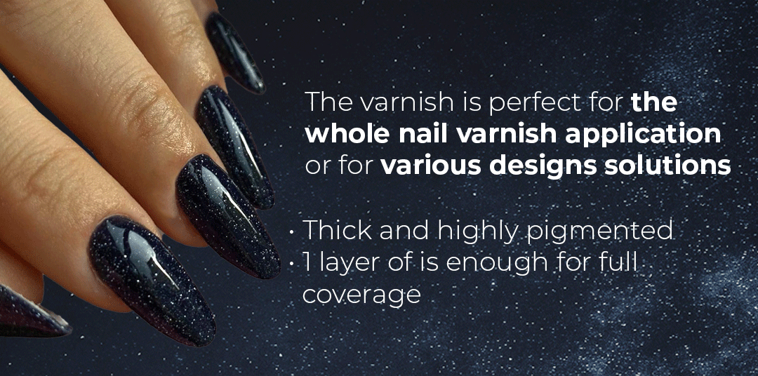 Enriched with platinum pigments, perfect for full nail coverage or various design solutions.