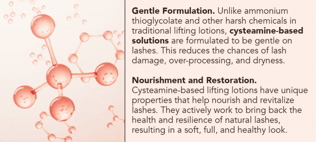 Step 1 - LIFTING LOTION: Prepare your lashes for the lash lift with our lifting lotion, which uses cysteamine as an active ingredient. This step makes your lashes more flexible and ready for shaping.
