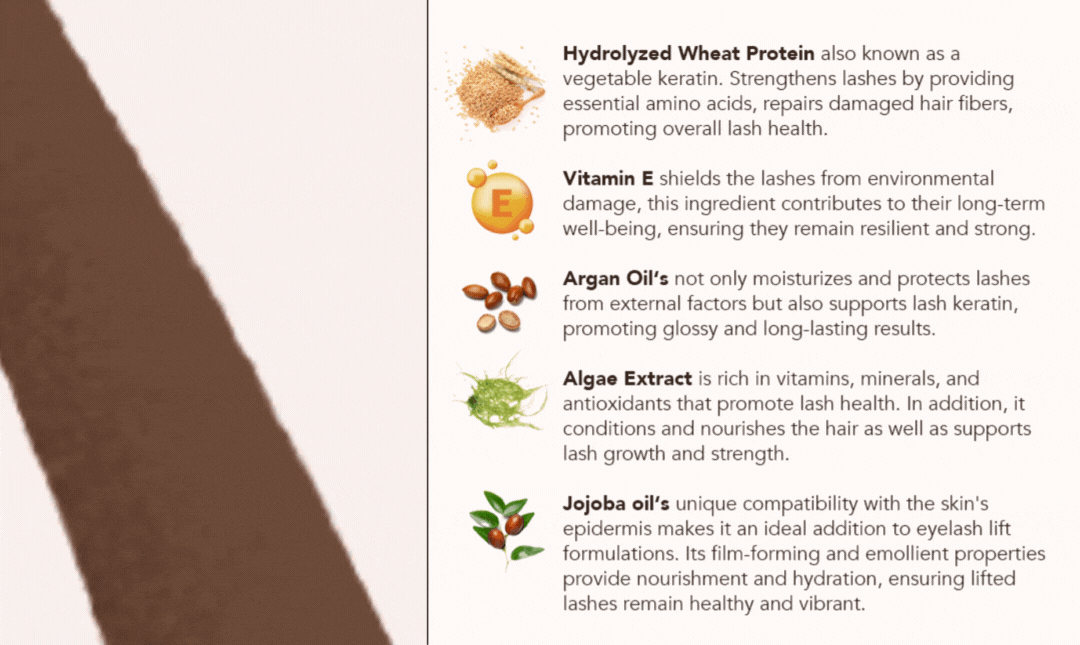 Step 3 - RECOVERY & CARE LOTION: After the lash lift, condition and nourish your lashes with our Recovery & Care Lotion. It contains natural ingredients such as plant keratin, vitamin E, argan oil, and more to ensure your lashes stay healthy, hydrated, and radiant.